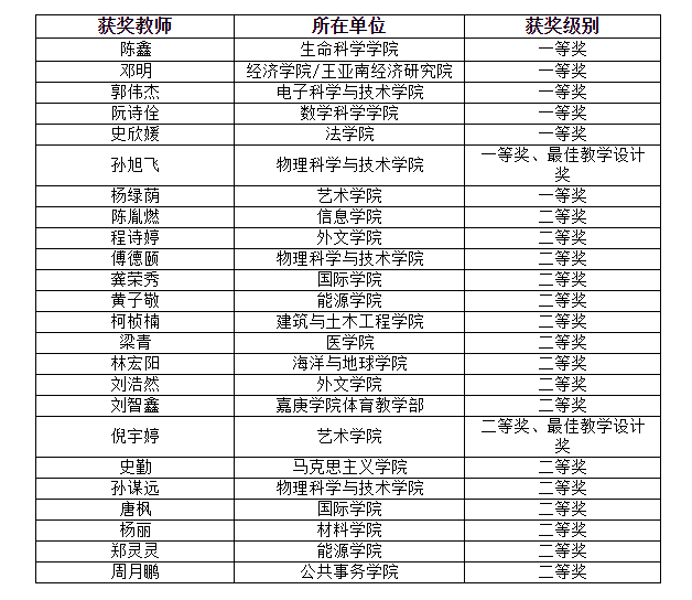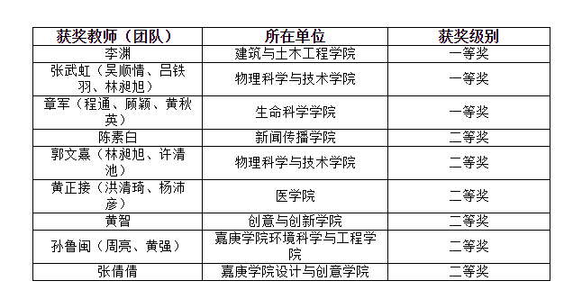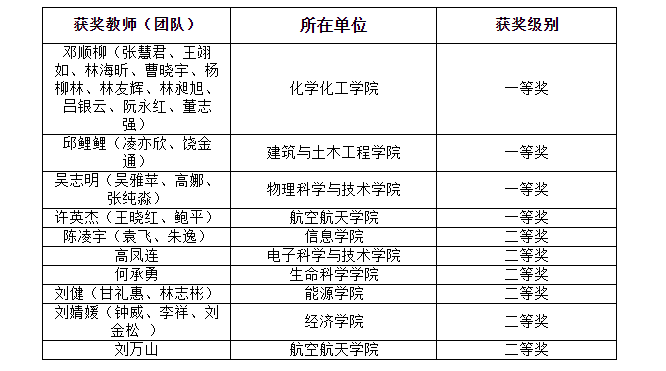 附件:厦门大学第十七届教学比赛获奖教师公示名单