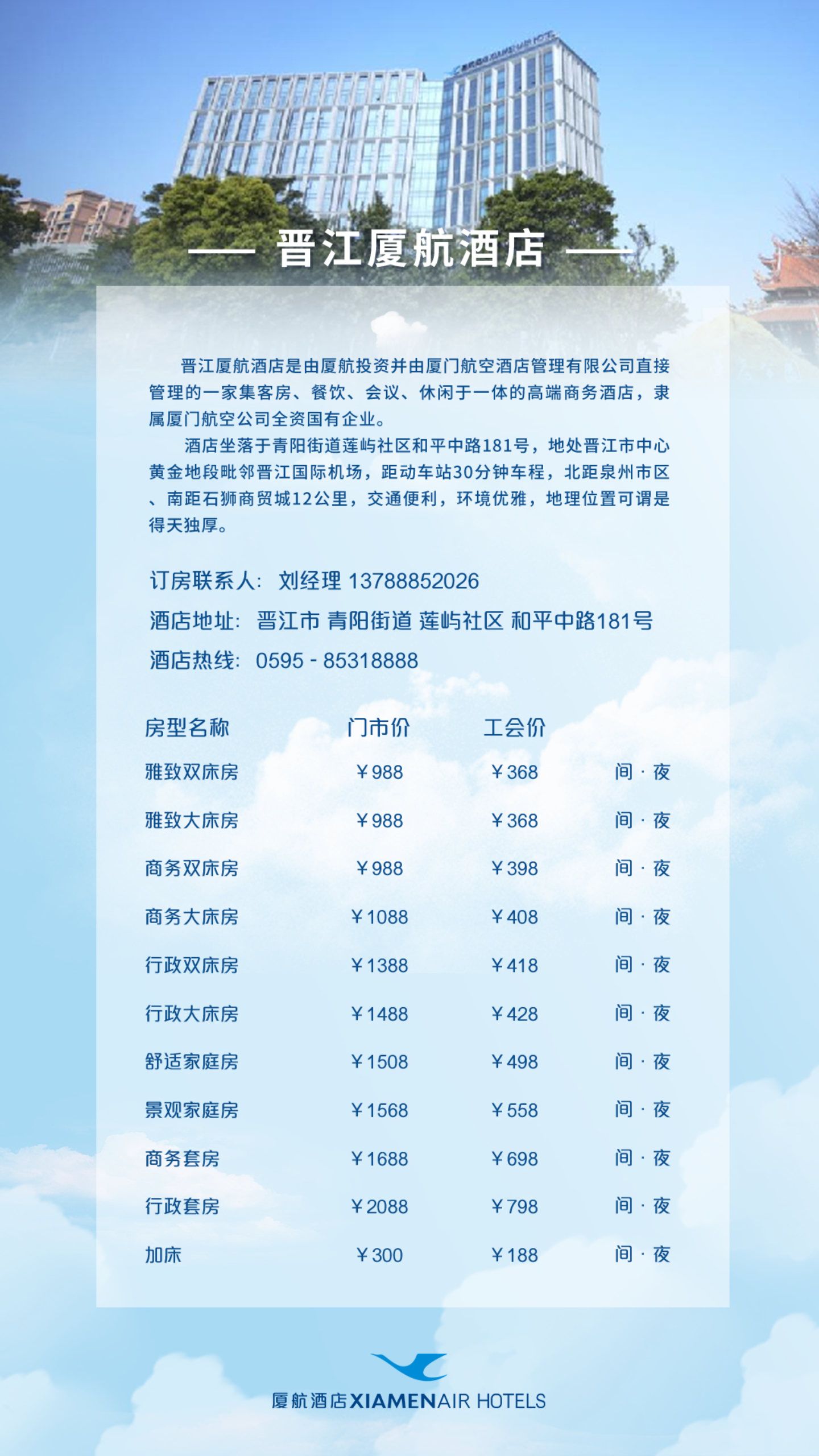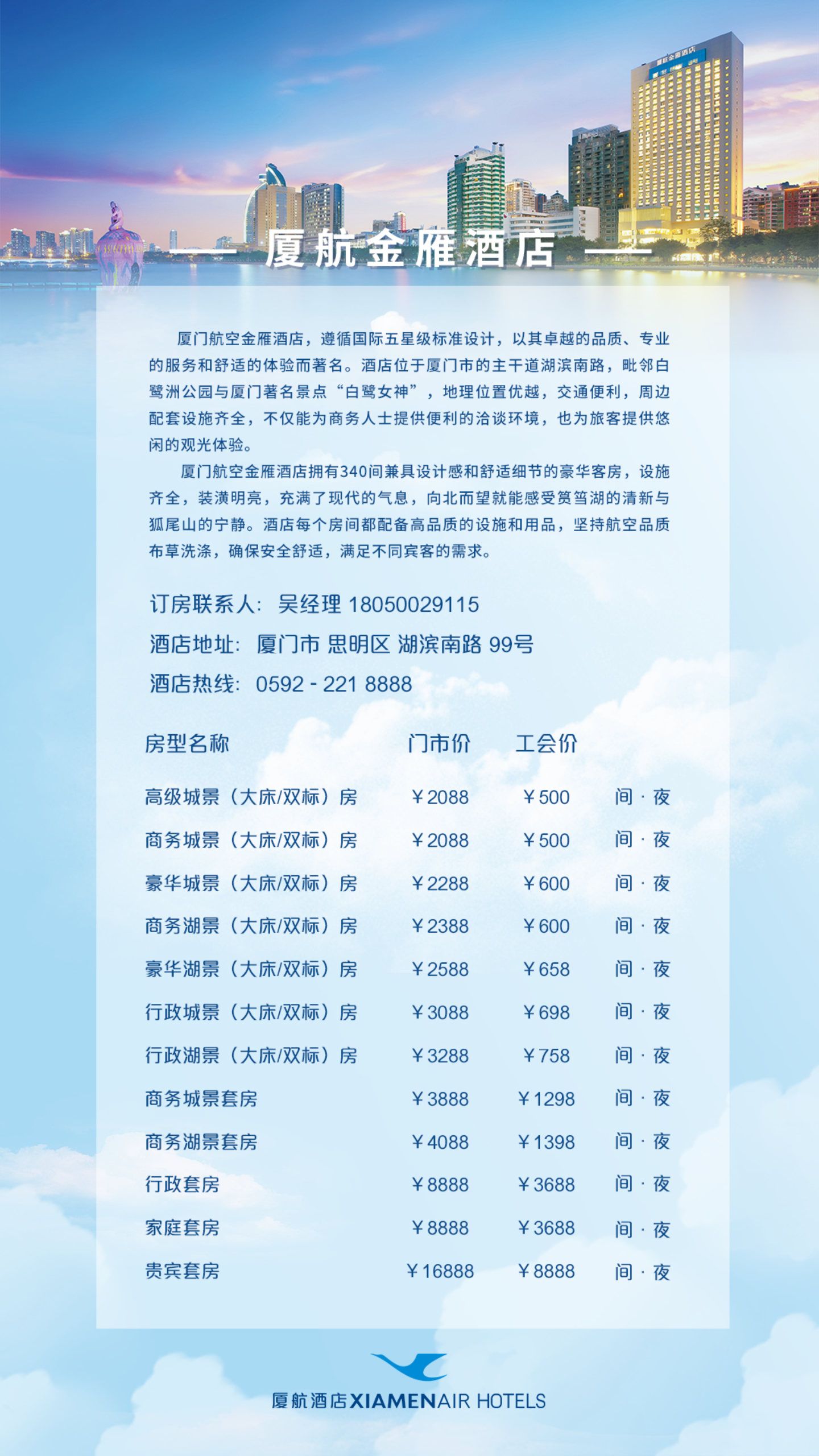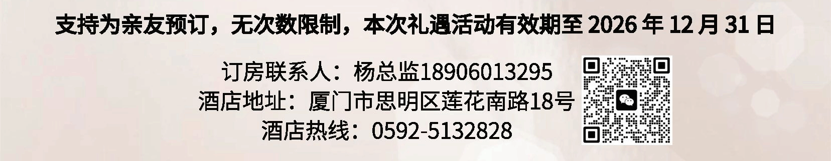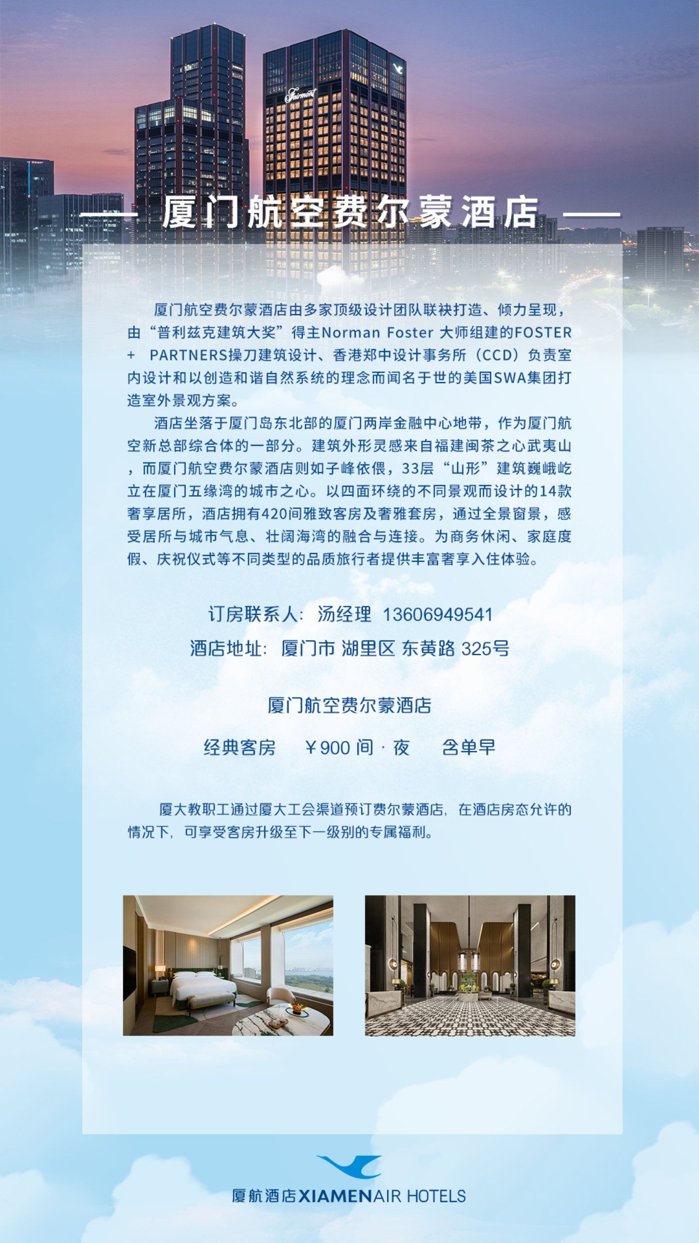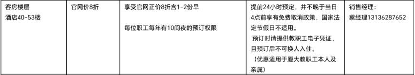 厦大教职工专享商务标准间仅300元/晚含双早,赠果盘享升级,同时可为亲友预订。