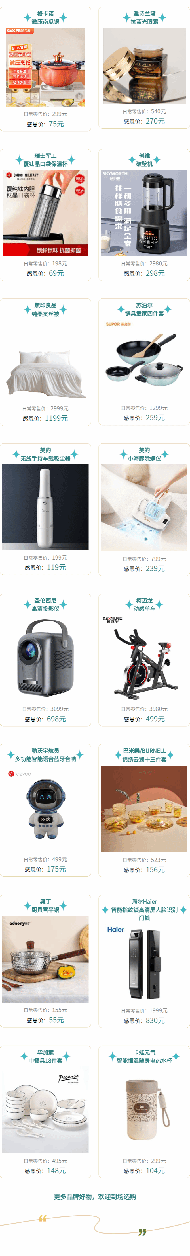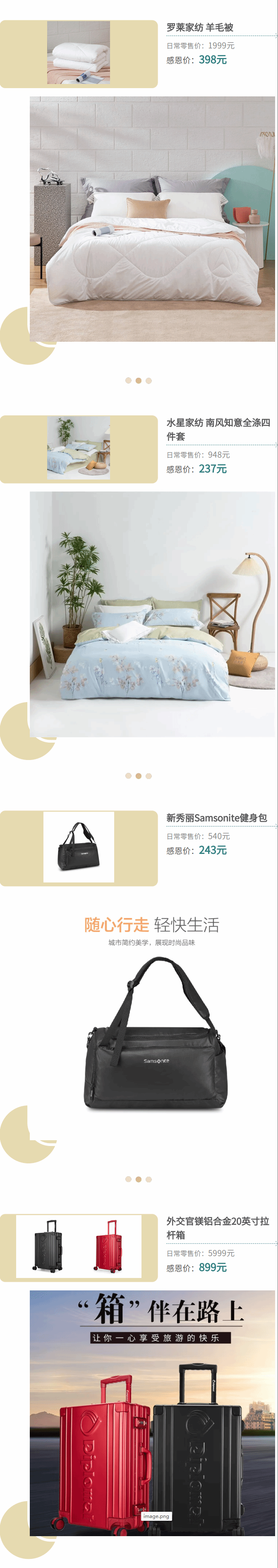 本次活动精选健康监测、厨房升级、卧室舒适等日常生活用品好物,精选美的除螨仪、SKG睡眠眼罩、西屋即热饮水机、创维破壁机、外交官拉杆箱、罗莱羊毛被、慕思乳胶枕、水星家纺四件套等知名品牌正品好物!