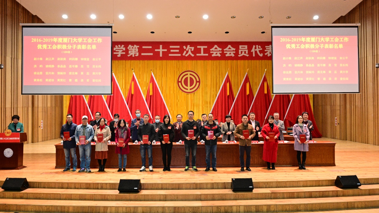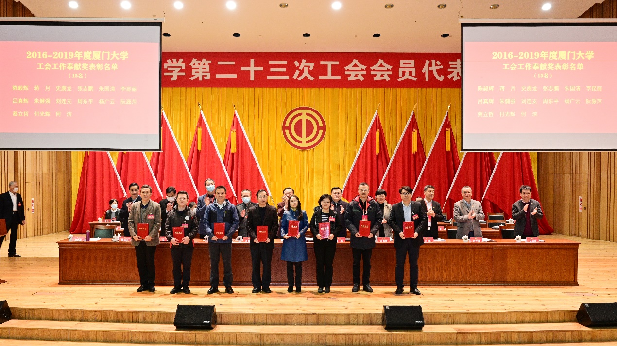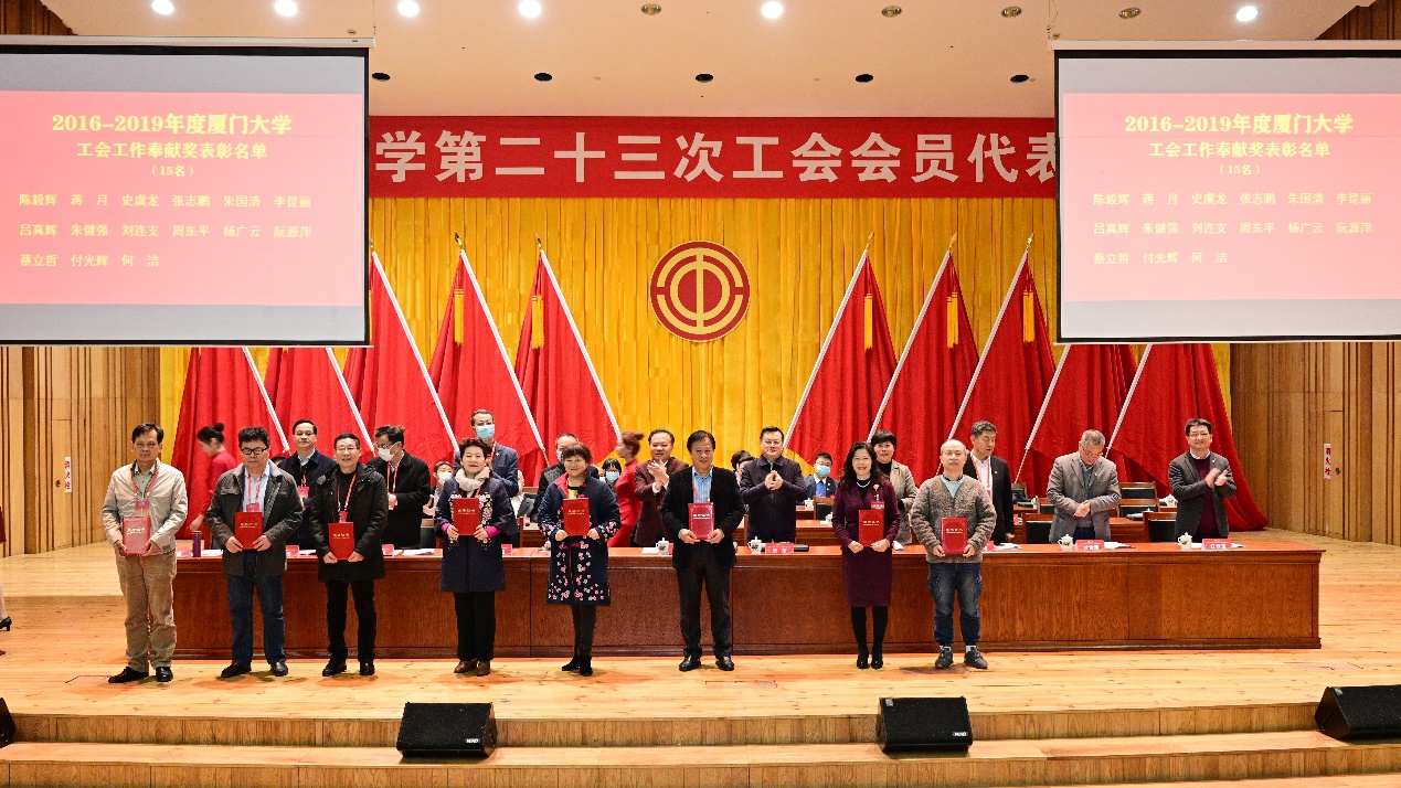 1月8日,厦门大学第二十三次工会会员代表大会在科学艺术中心召开。大会听取、审议校第二十二届工会委员会工作报告和经费审查委员会报告,表彰工会先进集体和个人,选举产生新一届校工会委员会和经费审查委员会。校党委书记张彦、校长张荣,福建省教科文卫体工会工委一级调研员朱毅敏,厦门市总工会党组成员、副主席朱秀敏出席。
