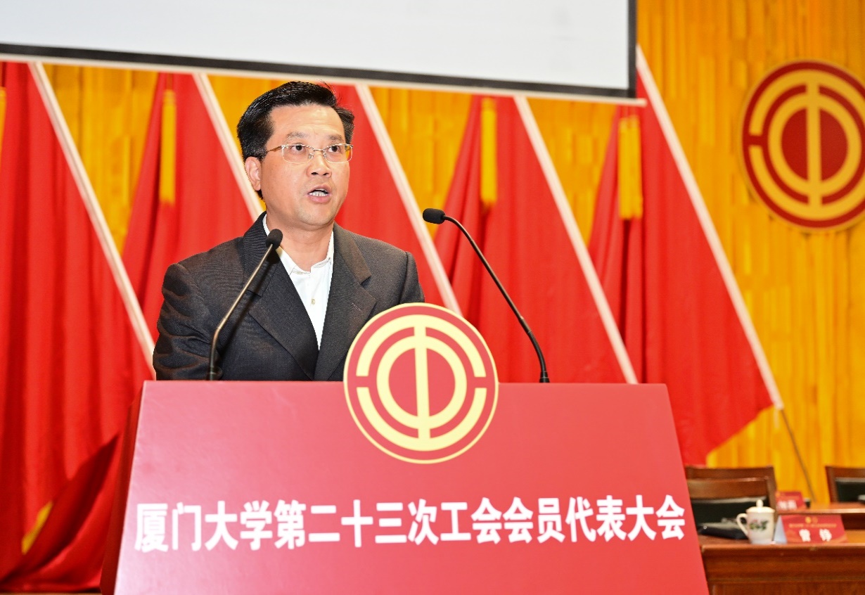 校党委常委、副校长邓朝晖主持厦门大学第二十三届工会委员会第一次全体会议暨经费审查委员会第一次全体会议。