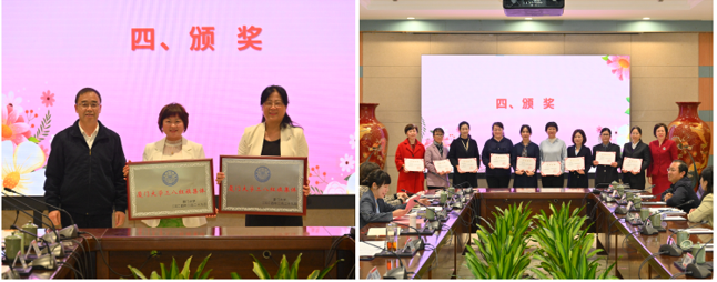 会上,邓朝晖宣读2022-2023年度厦门大学“三八红旗集体、三八红旗手”表彰决定。校领导为获奖集体和个人颁奖,并对她们表示热烈祝贺。