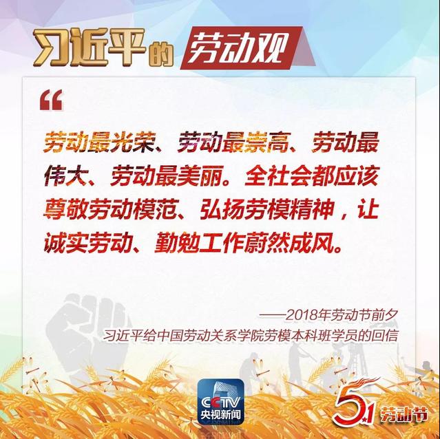 在“五一”国际劳动节来临之际,中共中央总书记、国家主席、中央军委主席习近平给中国劳动关系学院劳模本科班学员回信,向他们并向全国所有劳动模范、向全国广大劳动者致以节日的问候。
