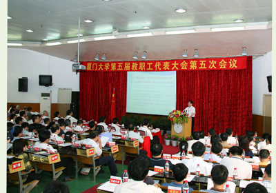 6月15日上午,我校第五届教职工代表大会第五次会议在化学报告厅隆重召开。校长朱崇实作了题为《坚持科学发展、和谐发展,扎实推进高水平研究型大学建设》的讲话,副校长赖虹凯对《厦门大学西村、北村新建教职工住宅出售方案(草案)》作了详尽说明。