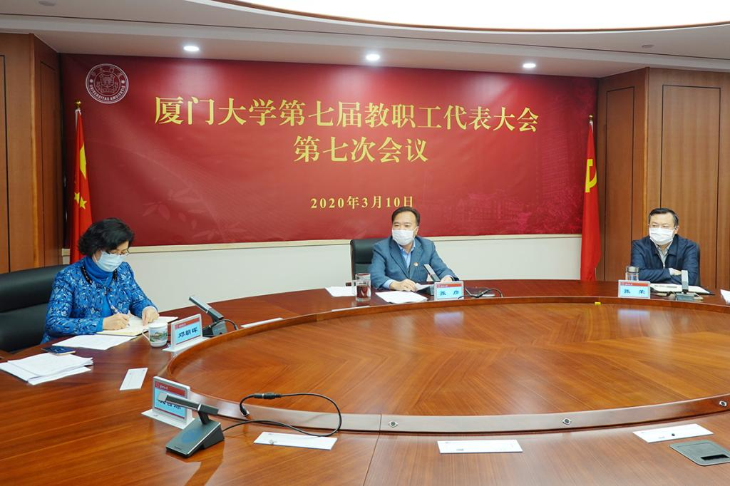 3月10日,厦门大学第七届教职工代表大会第七次会议召开,听取讨论学校2019年工作总结和2020年工作计划要点,听取讨论2019年预算执行、财务决算和2020年预算情况。会议以网络视频的形式进行,副校长邓朝晖担任大会秘书长并主持会议。