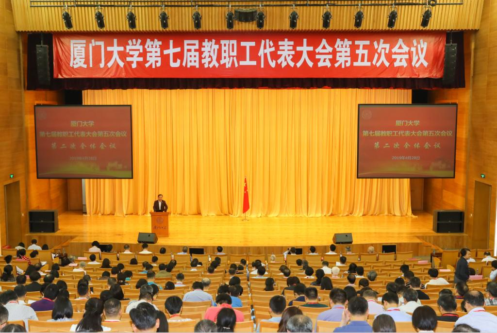 4月28日,我校第七届教职工代表大会第五次会议在科学艺术中心召开。大会听取了厦门大学2018年工作总结、2019年工作计划要点、厦门大学2018年度财务预决算及2019年预算情况报告,通过了《关于加强高层次人才队伍建设的若干意见》,调整了第七届教职工代表大会住房与物业管理民主监督委员会委员。校党委常委、副校长邓朝晖,校工会常务副主席叶鹏飞分别主持两次全体会议。