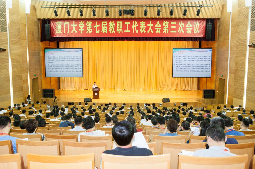 日前,校第七届教职工代表大会第三次会议召开。大会听取、审议了厦门大学2016年工作总结报告、厦门大学2016年度财务预决算工作及2017年预算编制情况报告,讨论、通过了《厦门大学教职工代表大会实施细则》和《厦门大学教职工绩效考核评价体系改革总体方案》。