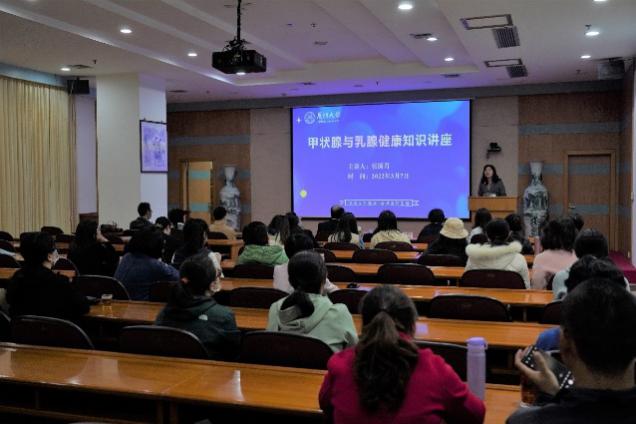 3月7日晚,张国君教授为我校女教职工做题为《甲状腺与乳腺健康知识》的讲座,宣传甲状腺与乳腺的健康知识,将日常生活中十分常见的、大家所关心的健康话题逐一解答,指导及帮助大家解决日常生活中的困扰。