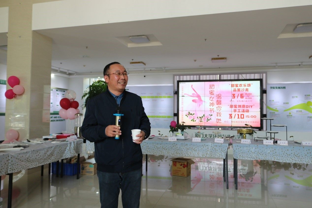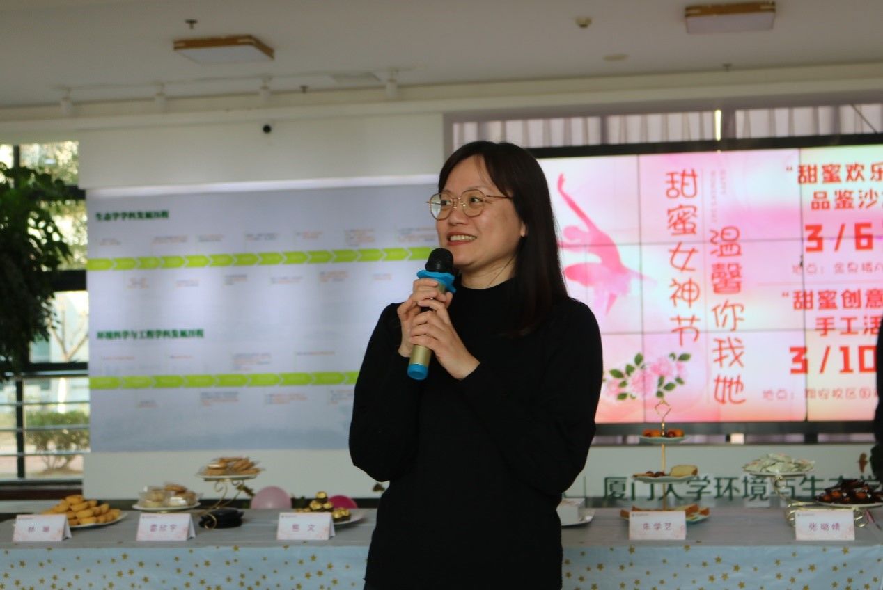 阳春三月,万象更新,百花争艳。为纪念第113个“三八”国际妇女节,让全体女教职工过一个健康、和谐、快乐、温馨的节日,3月6日下午,环境与生态学院工会、妇委会和办公室在金泉楼大厅联合举办“甜蜜女神节,温馨你我他”美食品鉴沙龙,吸引了学院女教工们的踊跃参与,男教工也纷纷到场送上祝福、共享美食。沙龙由学院妇委会主任陈鹭真主持。