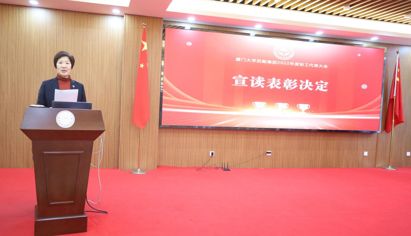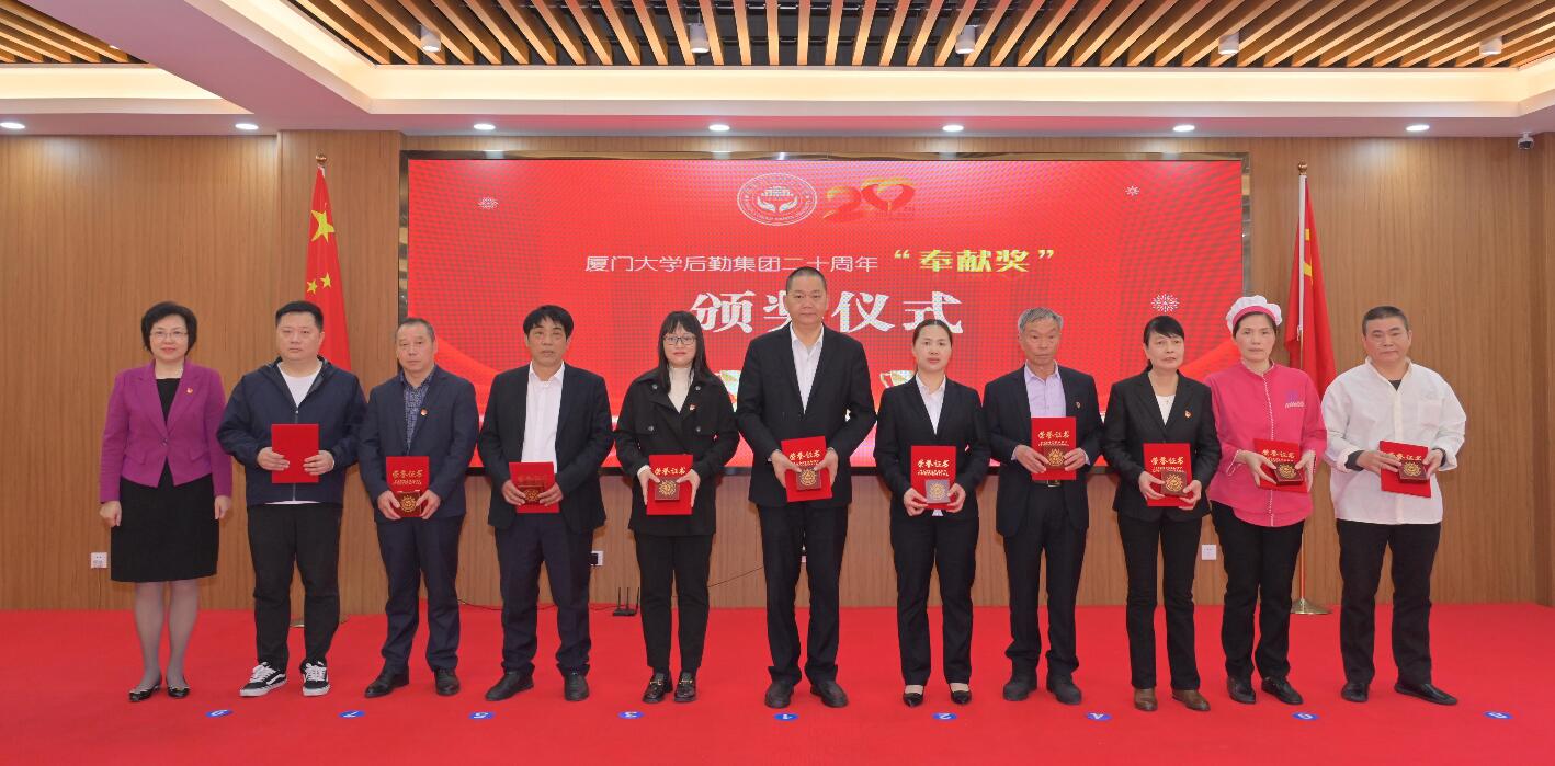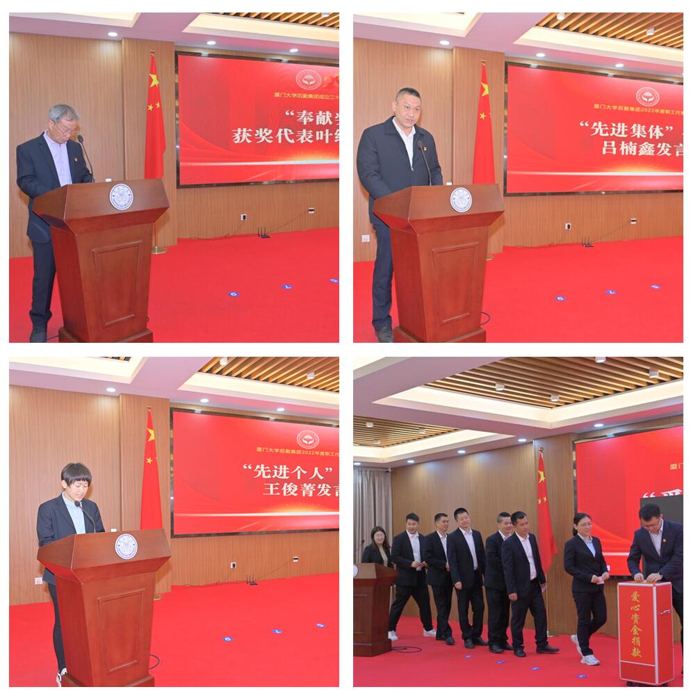 会上,杨云良宣读了《关于颁发厦门大学后勤集团成立二十周年特别贡献奖、奉献奖的决定》,党委副书记邓泽君宣读了《关于表彰后勤集团2022年度“先进集体”“先进个人”的决定》,校领导和集团领导班子分别为获奖人员颁奖。奉献奖代表学生公寓与环境服务中心退休返聘员工叶绍灿及2022年度先进集体代表运输服务中心副主任(主持工作)吕楠鑫、先进个人代表饮食服务中心漳州校区南区餐厅主管王俊菁也分别作了发言。大会还举行了2022年度爱心资金捐款。