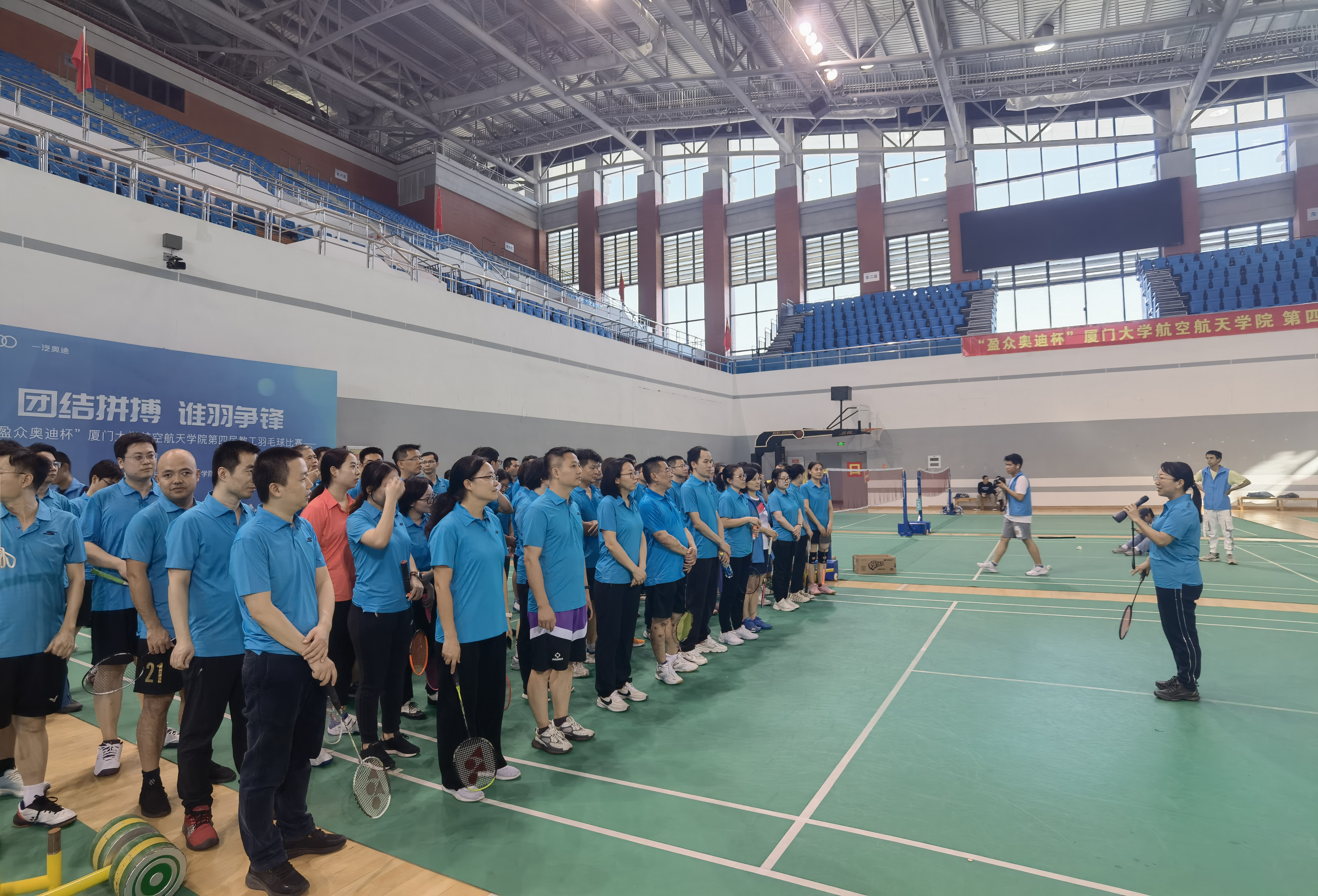 为深入学习贯彻党的二十大精神和中国工会十八大精神,切实推进实施全民健身国家战略,丰富教职工业余文体生活,航空航天学院工会于12月11日在爱秋体育馆举办“盈众奥迪杯”第四届航空航天学院教职工羽毛球赛。学院党委书记廖志丹参加开幕式并致辞,副院长卿新林,党委副书记林蔚、王寒等参加活动。