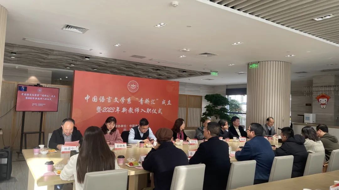2023年12月25日下午,中国语言文学系“青骄汇”成立暨2023年新教师入职仪式在建文楼一楼大厅隆重举行。校教师发展中心副主任朱水涌、教师工作部副部长杨建中、人事处副处长柯自聪、工会副主席茹晓燕莅临指导,中文系党政班子成员、退休教师代表、教研室主任及青年教职工参加活动。活动由中文系工会主席苏永延主持,采取线上线下相结合的方式进行。