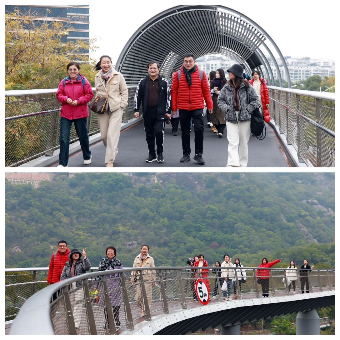 春意盎然,山花浪漫。老师们陆续来到山海健康步道林海线入口,伴随淅淅沥沥的小雨,开启踏青赏花之旅。漫步空中步道,呼吸着清新的空气,感受都市森林白鹭翩跹、碧潭婉约的别样气息,观赏沿途如诗如画、绚丽多彩的花海美景,老师们放松心情,或拍照、或谈心,一路欢声笑语不断。