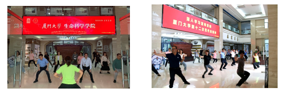 自4月8日起,院工会在全院组织推广每日“健身一刻”八段锦训练。学院领导班子带头参与,教职工们积极响应,走出办公室,投入到健身练习中来。老师们在体育教学部黄惠玲老师和翔安校区气功协会同学的带领下,认真学习,互相交流,初步掌握了动作要领,伴随着悠扬的音乐,时而缓缓抬手,时而左右开弓,一招一式间,展示出了“八段锦”的独特神韵,让身心得以舒展和放松,为更好开展工作加油充电。