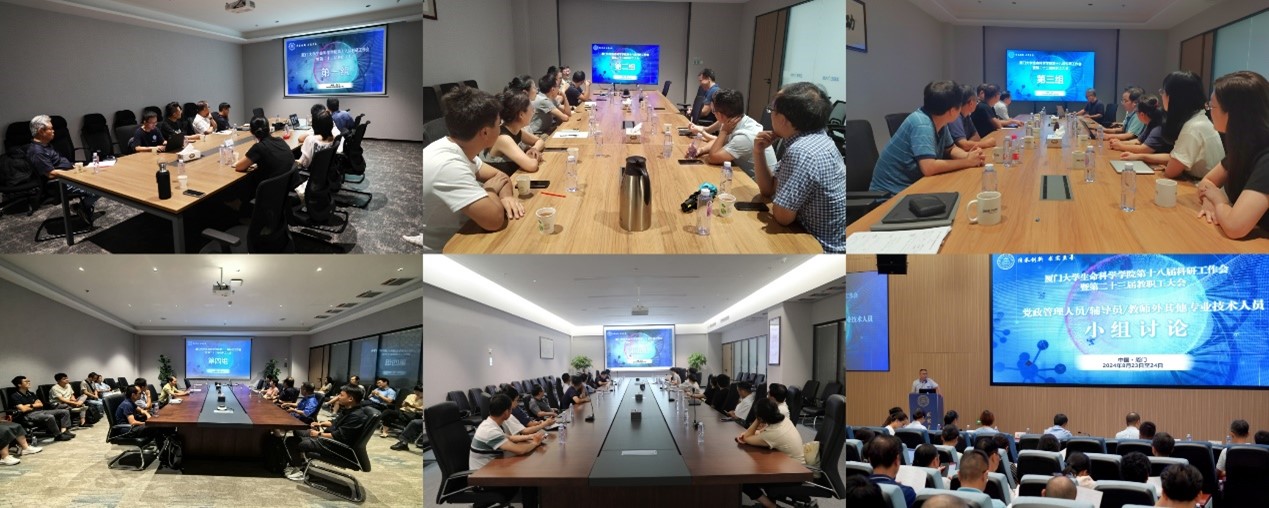 24日上午,全体教工分为六个小组分别围绕大会主题,就科研工作进展、学院各项工作报告等内容展开深入研讨并逐一汇报交流,积极为学院发展建言献策。