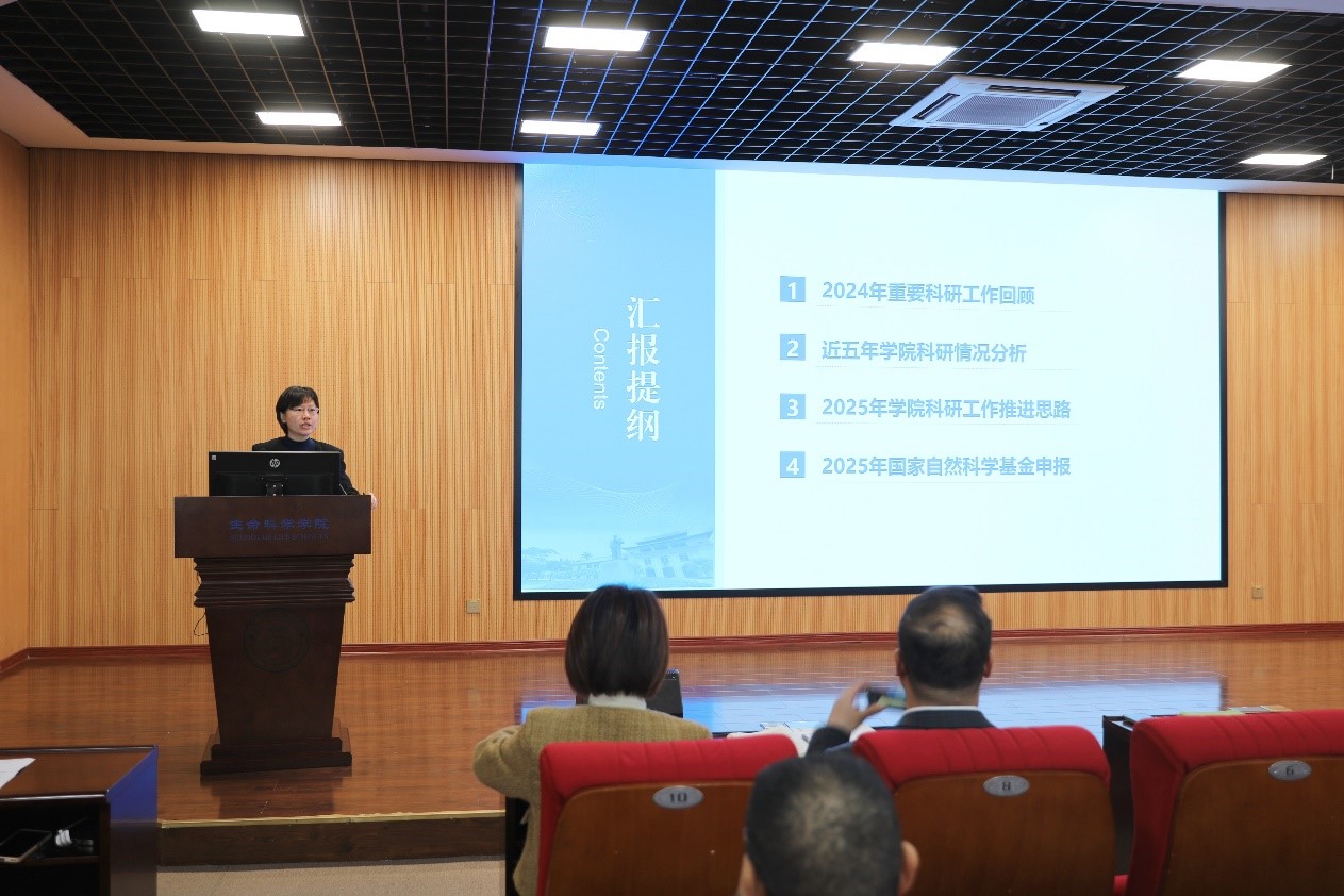 会上,学院副院长黄烯作科研情况分析及2025年国家基金申报动员,她简要介绍了2024年重要科研工作、近五年学院科研情况分析以及2025年科研工作推进思路,同时对2025年国家自然科学基金申报进行了说明,鼓励学院科研团队积极申报,不断提升科研创新能力,为学科发展贡献力量。
