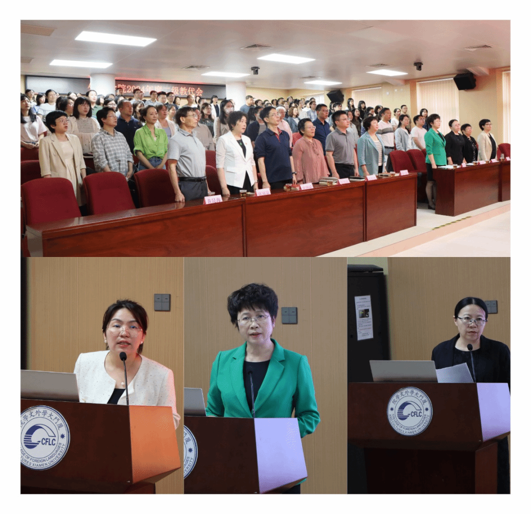 徐琪书记作总结讲话。她强调,2024年是学院承压奋进、收获颇丰的一年,成绩的取得离不开全体教职工的共同努力。面对“十五五”新征程,学院需把握三大重点:一是提高政治站位,以习近平新时代中国特色社会主义思想为指导,落实立德树人根本任务;二是强化责任担当,聚焦“十五五”规划编制,找准学科发展定位,破解瓶颈问题;三是弘扬优良作风,以中央八项规定精神为标尺,提升管理服务效能,营造团结奋进的学院文化。徐琪书记号召全体教职工以本次大会为契机,凝聚共识、真抓实干,为建设世界一流外文学科贡献力量。大会在激昂的国际歌声中圆满落幕。