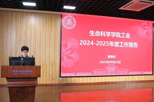 学院工会主席黄青松作《生命科学学院工会2024-2025年度工作报告》,她汇报了学院工会工作情况、表示工会将牢固树立全心全意为教职工服务的理念,切实发挥“娘家人”作用,不断增强教职工的归属感和幸福感。