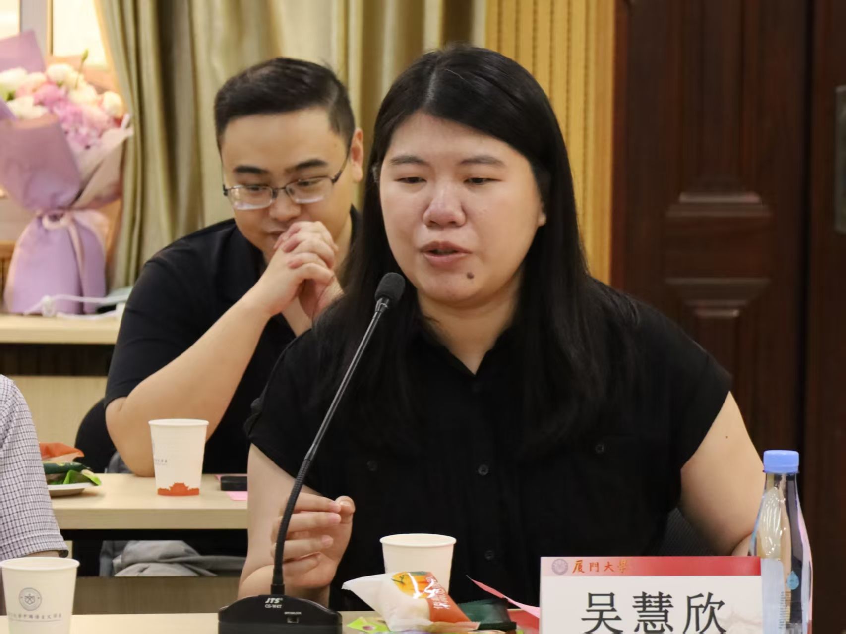 青年教师依次发表自己的入职感言。刘月悦分享了她初见厦大的趣事,表达了她对厦大自然与人文融合的环境的赞美;吴慧欣讲述了自己回到母系工作,努力适应环境的心理;杨皓童表示,青年教师应当积极投入教研工作,为中文系的发展做出更多贡献;张惠娟则强调了指导老师的重要性,感谢他们传授的经验与智慧。