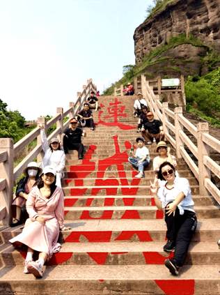 4月11日,老师们怀着愉悦的心情抵达冠豸山,开启了沉浸式山水之旅。冠豸山被誉为“丹霞双绝”,集雄奇幽秀于一体。大家先后游览了石门湖、生命之门、鲤鱼背等景点,碧波荡漾的湖水映着丹崖峭壁,蜿蜒步道串联起长寿亭、悬索桥、一线天的景致,仿佛置身于仙境。大家漫步山间、驻足赏景,呼吸清新空气,畅谈工作生活,在自然美景中舒缓了伏案工作的疲惫,深切领略到了冠豸山“阳刚天下第一、阴柔举世无双”的独特魅力。