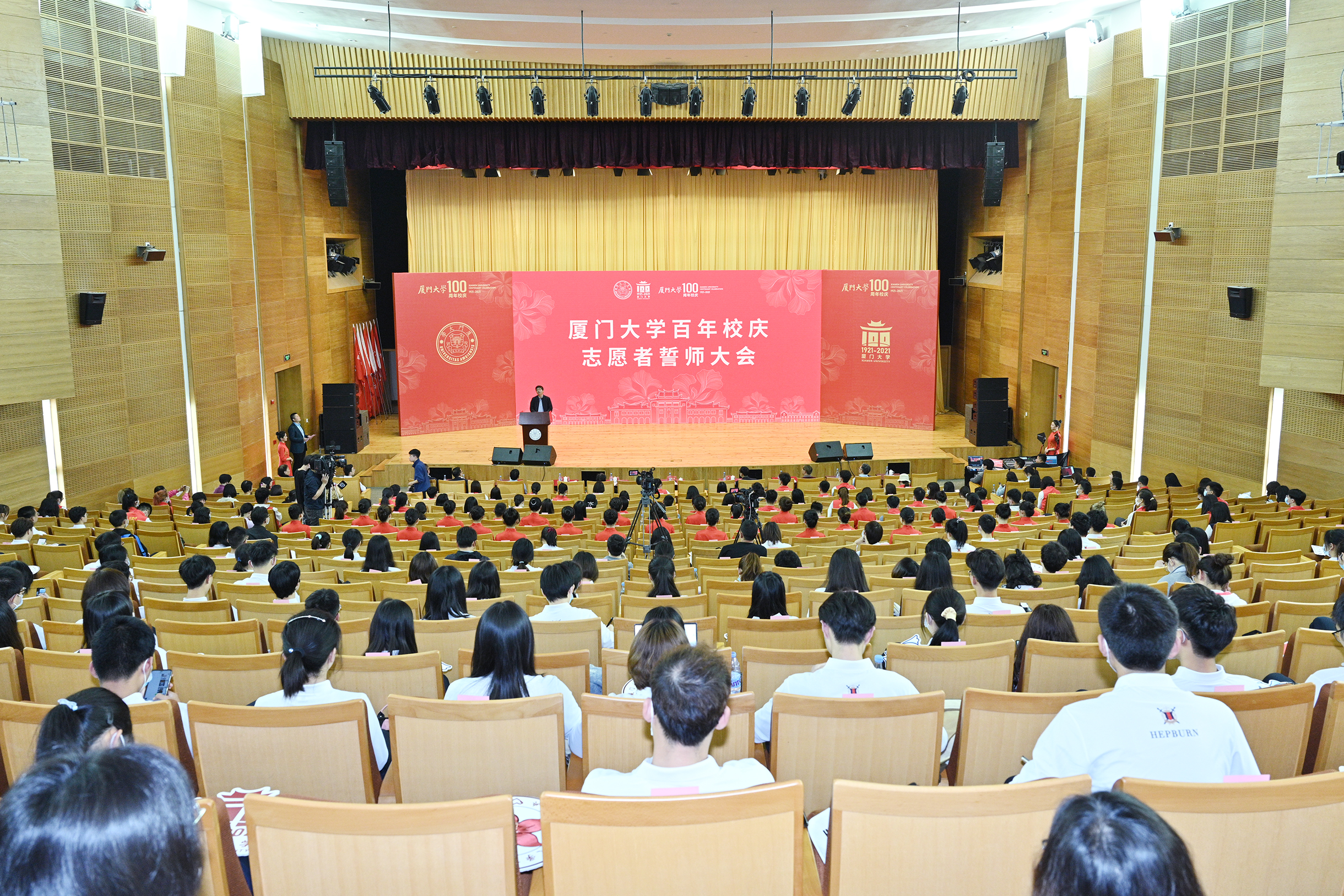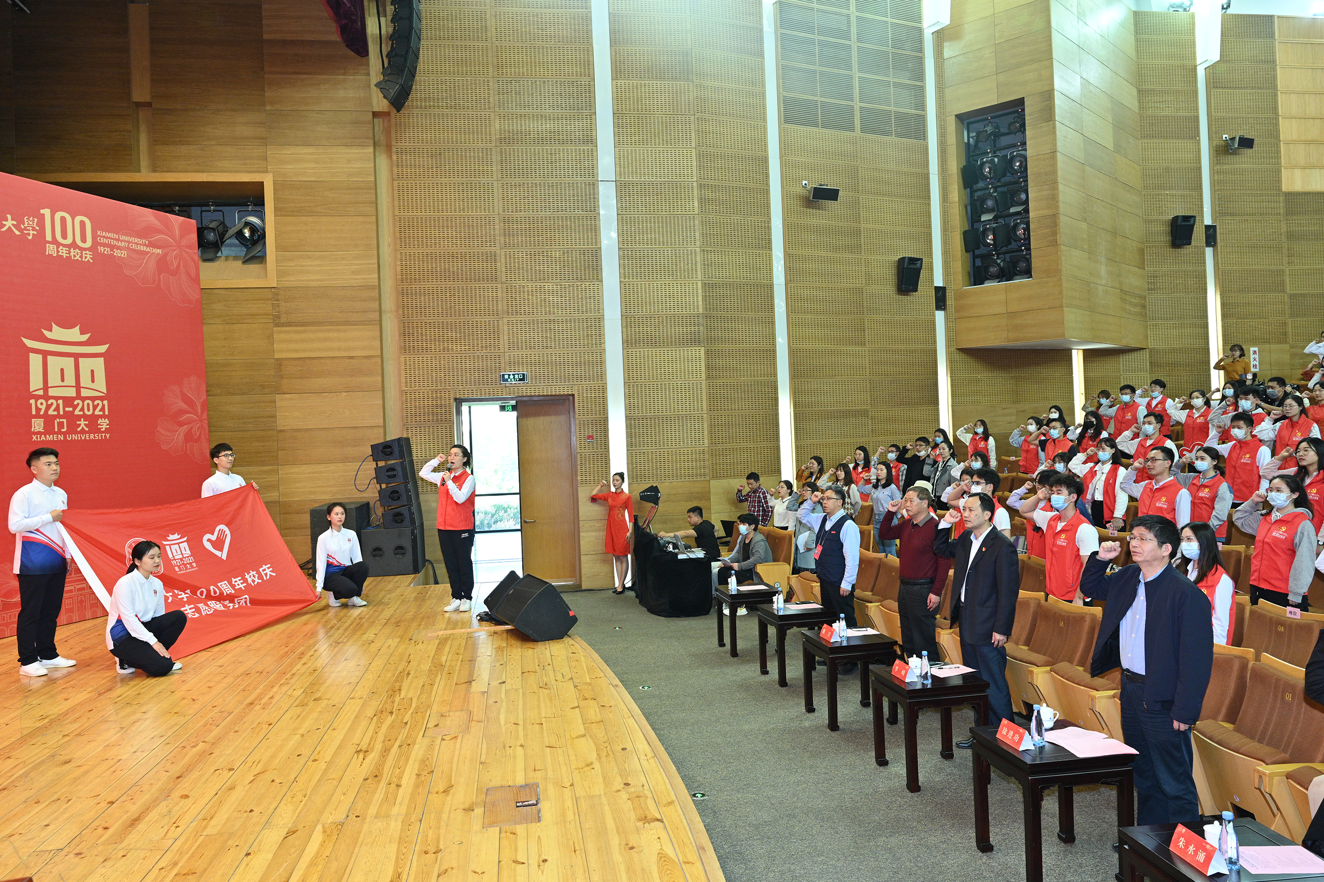 3月27日下午,厦门大学百年校庆志愿者誓师大会暨“嘉庚精神 薪火相传”主题团日活动在科学艺术中心举行。校党委副书记徐进功出席。校团委书记曾铮主持。