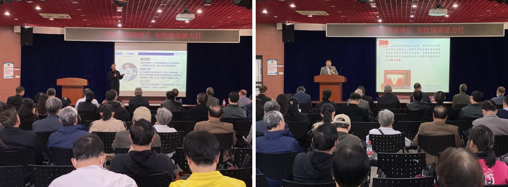 3月25日下午,离退休工作部在自钦楼二楼报告厅举行离退休教职工党支部骨干党史学习教育主题报告会。报告会邀请了学校特约督查员、厦门市老教授协会常务副会长、马克思主义学院苏劲教授作题为《中国共产党百年奋斗历程回顾与启示》专题报告,同时邀请校党委人才办专职副主任、人事处处长李军教授介绍我校人才引进情况。全校各单位离退休党支部书记、支委,各单位负责离退休工作联络员,老教授协会部分党员骨干共100多人参加会议。报告会由离退休工作部部长戴岩主持。