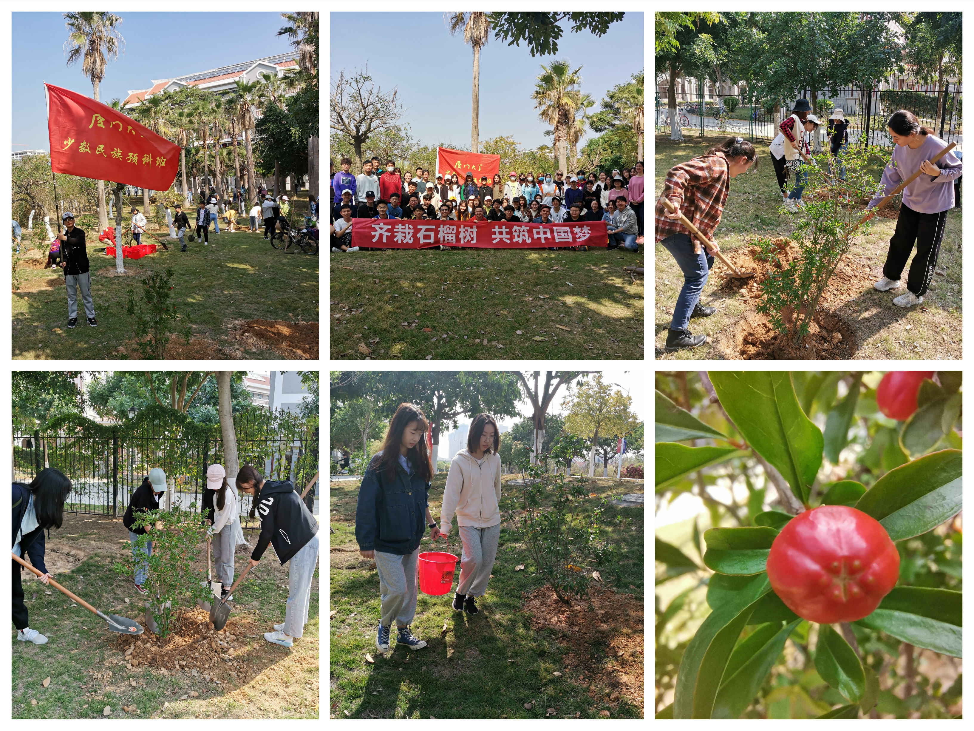 习近平总书记曾指出,“各民族要像石榴籽那样紧紧团结在一起”。近日,由我校学生工作部(处)少数民族预科生管理中心承建的“民族团结石榴园”在翔安校区落成。石榴园占地约1500平方米,位于翔安校区主干道芙蓉园区西侧靠湖路段,交通十分便利。