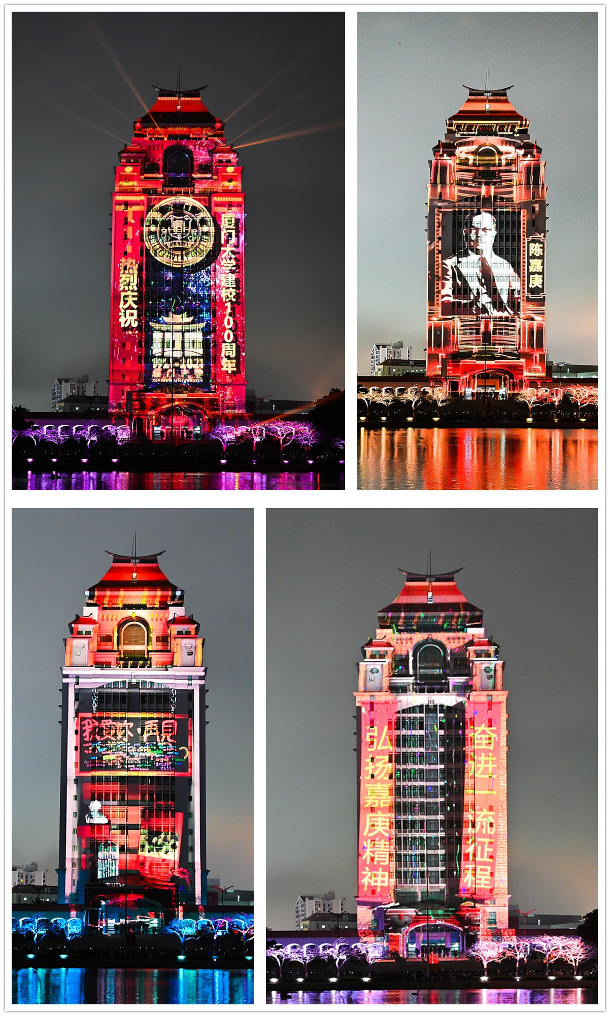 4月3日晚,献礼厦门大学建校100周年光影秀展映拉开帷幕。光影秀以“流金岁月 百年厦大”为主题,以颂恩楼为呈现载体,运用3D mapping的艺术形式将厦大百年历史一一展现,让观众领略厦大人百年来的华彩篇章,共同期待新百年的宏伟蓝图。