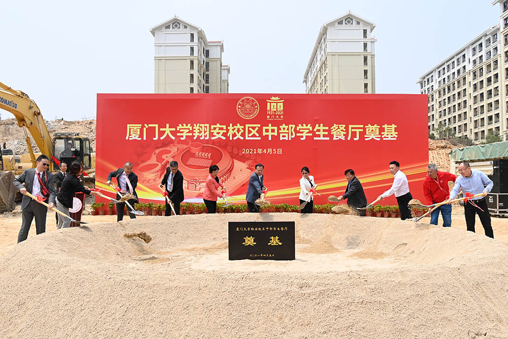 4月5日上午,厦门大学翔安校区中部学生餐厅奠基活动举行。校党委书记张彦,副校长邓朝晖,校友总会荣誉理事黄良快,“箪食瓢饮、衔环涌泉”项目发起人和捐赠代表、深圳校友会理事长孙小荔出席。